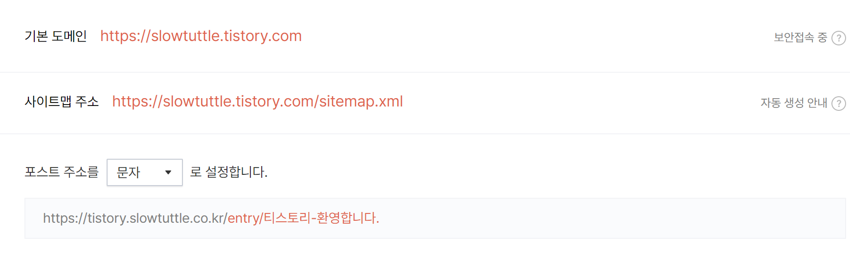 - 티스토리 자체 도메인 - https://tistory.slowtuttle.co.kr