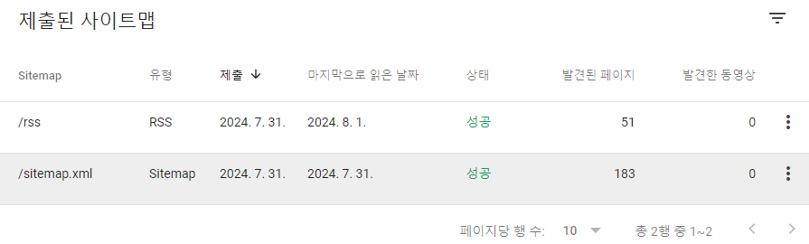 sitemap.xml, rss 입력