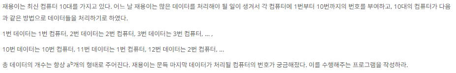 두번째는 모든 숫자들은 거듭제곱을 진행하면 반복되는 일의자리 숫자가 발생하게 된다.