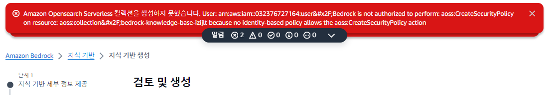 이번에 Bedrock RAG를 구성하면서도 다시 한번 AWS의 정책을 다시 한번 더 공부해야겠다 는 생각이 든 계기였다.