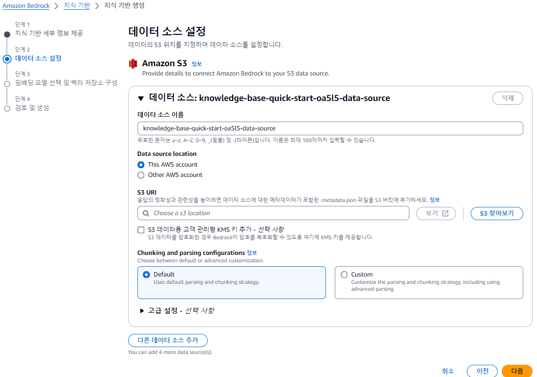 앞에서 다양한 데이터소스를 설정할 수 있지만 나는 s3를 사용해서 작업하기로함