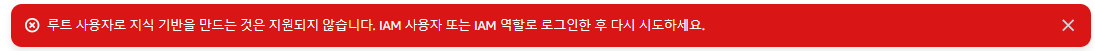 - 루트 계정으로는 작업이 안됨. 사용자 생성 필요 (사용자 생성 및 Access Key 발급은 여기로)