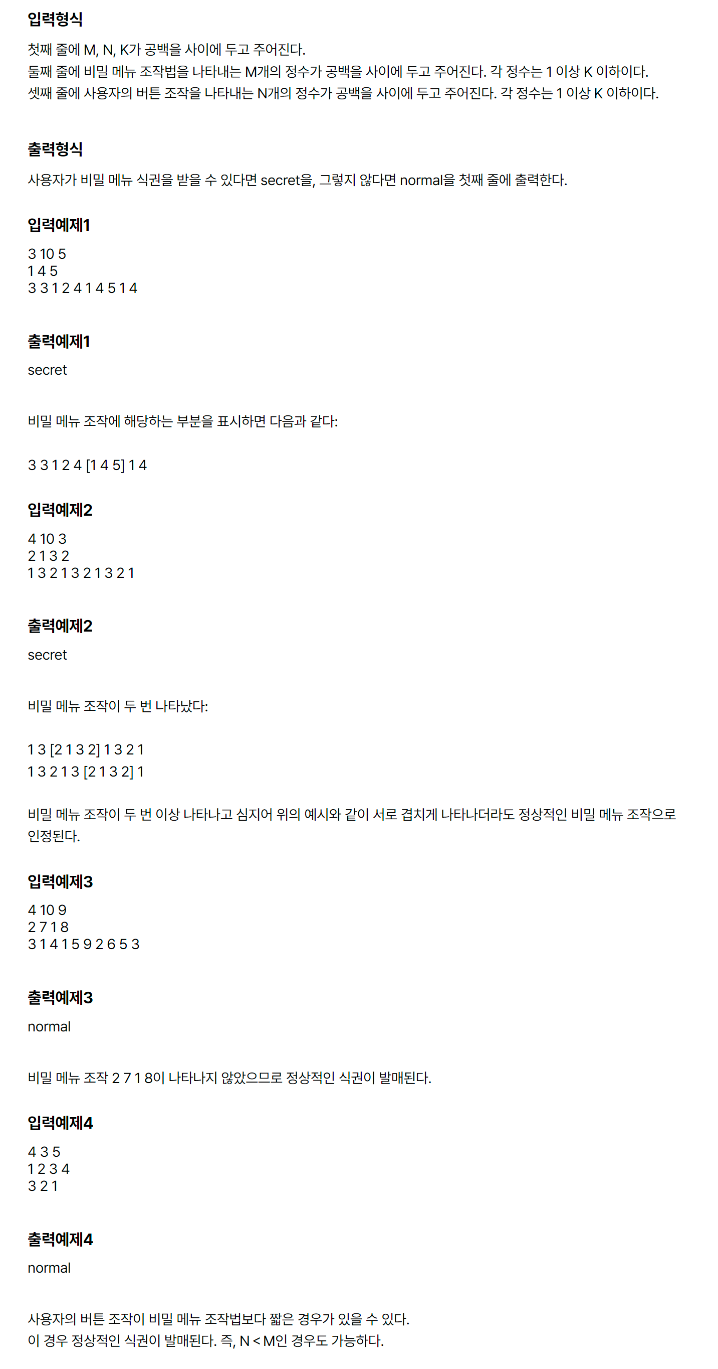 * 첫줄 : M, N, K