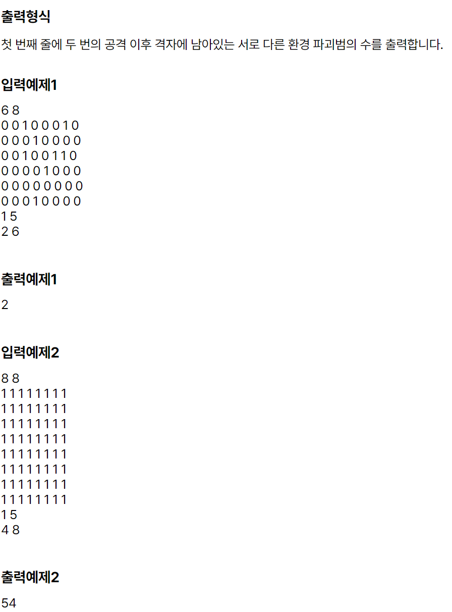 2. 공격한 행들의 환경 파괴자를 -1