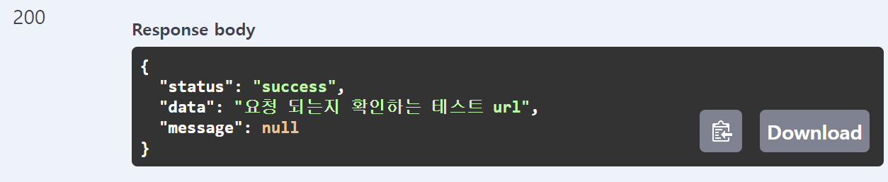 return CommResponse.createSuccess("요청 되는지 확인하는 테스트 url");